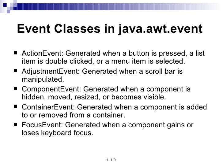 Common Gui Event Types And Listener Interfaces Gui Components Part 1