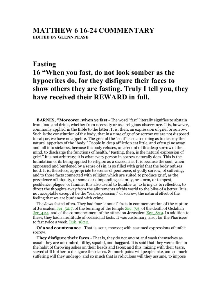 Matthew 6 16 24 Commentary