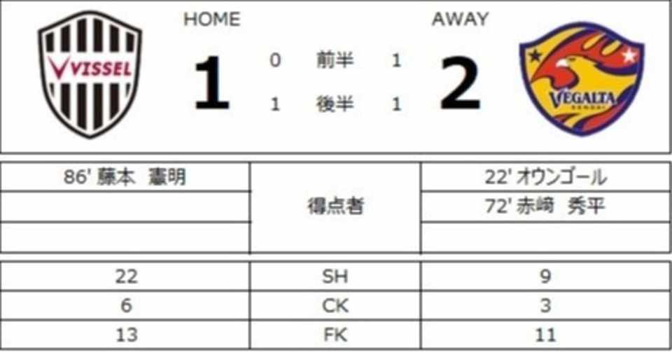 ベガルタ仙台 選手採点 明治安田生命j1 第9節 ヴィッセル神戸 アツシマ Note