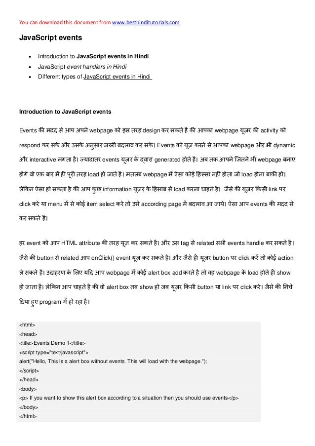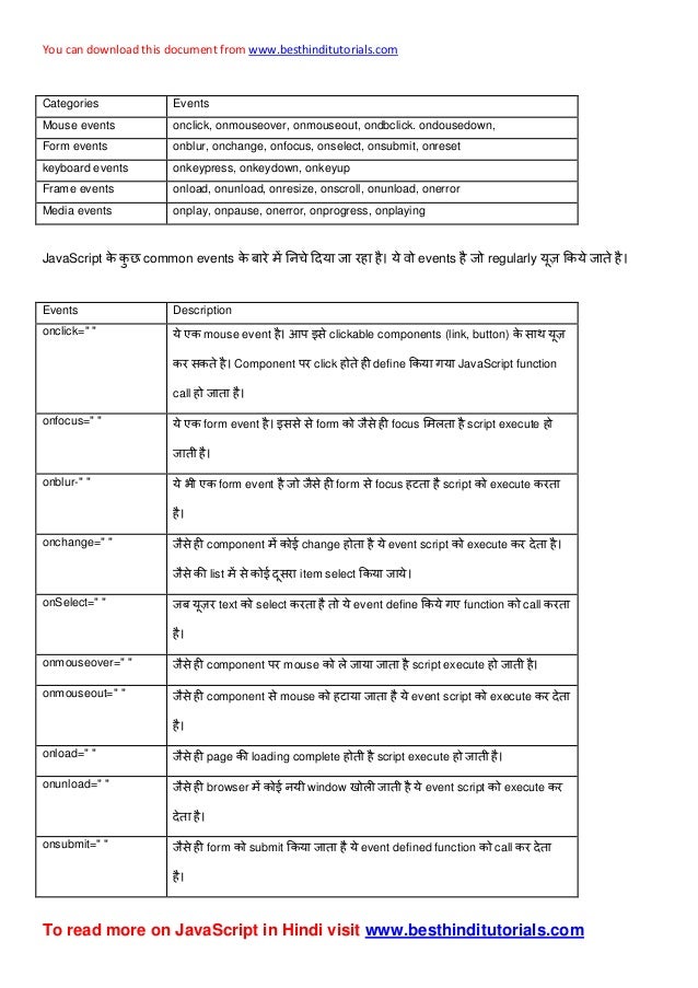 Java Script Events In Hindi