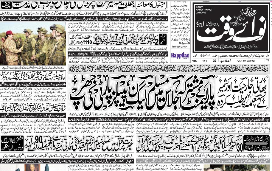 Daily Nawaiwaqt Urdu Newspaper Lahore