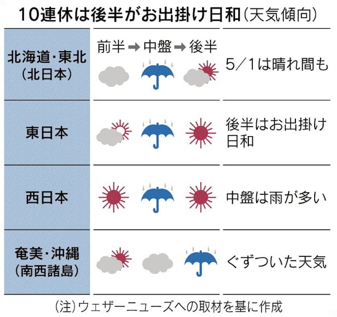 連休後半 お出掛け日和 日本経済新聞